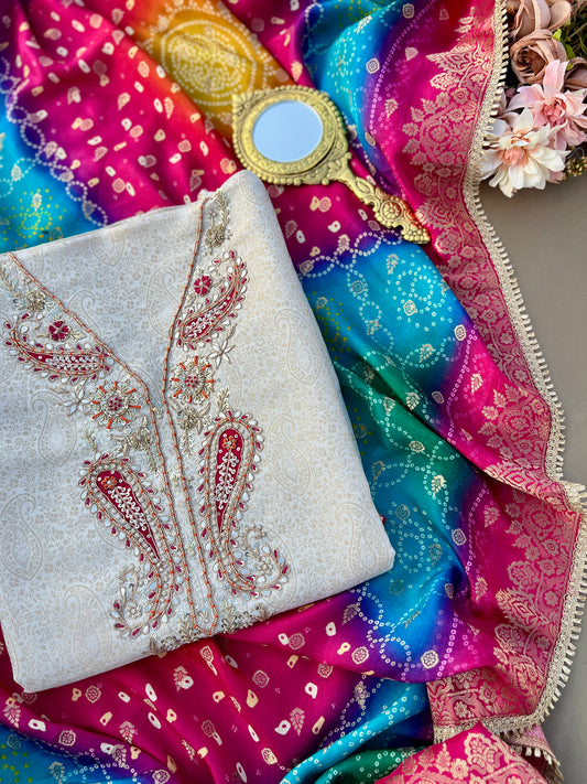 Banarasi Brocade Suit with bandhni Inspired Silk Dupatta