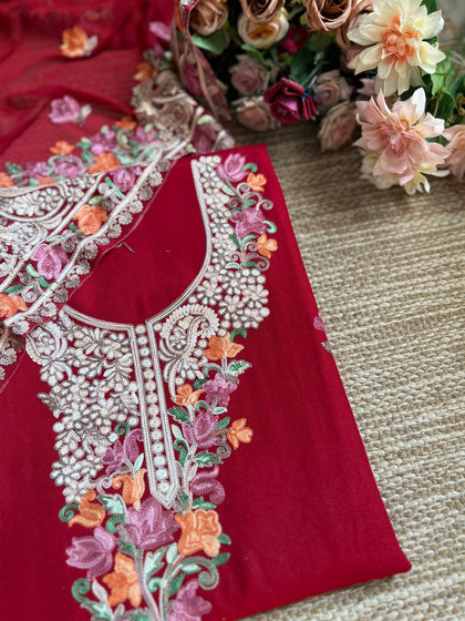 Wine Plum Timeless Kashmiri Unstitched Salwar Suit with Chiffon Dupatta