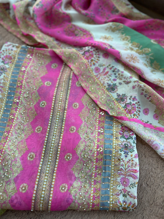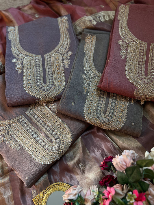 Pastel Elegance Crushed Shimmer Suit with Intricate Hand Embroidery & Silk Dupatta