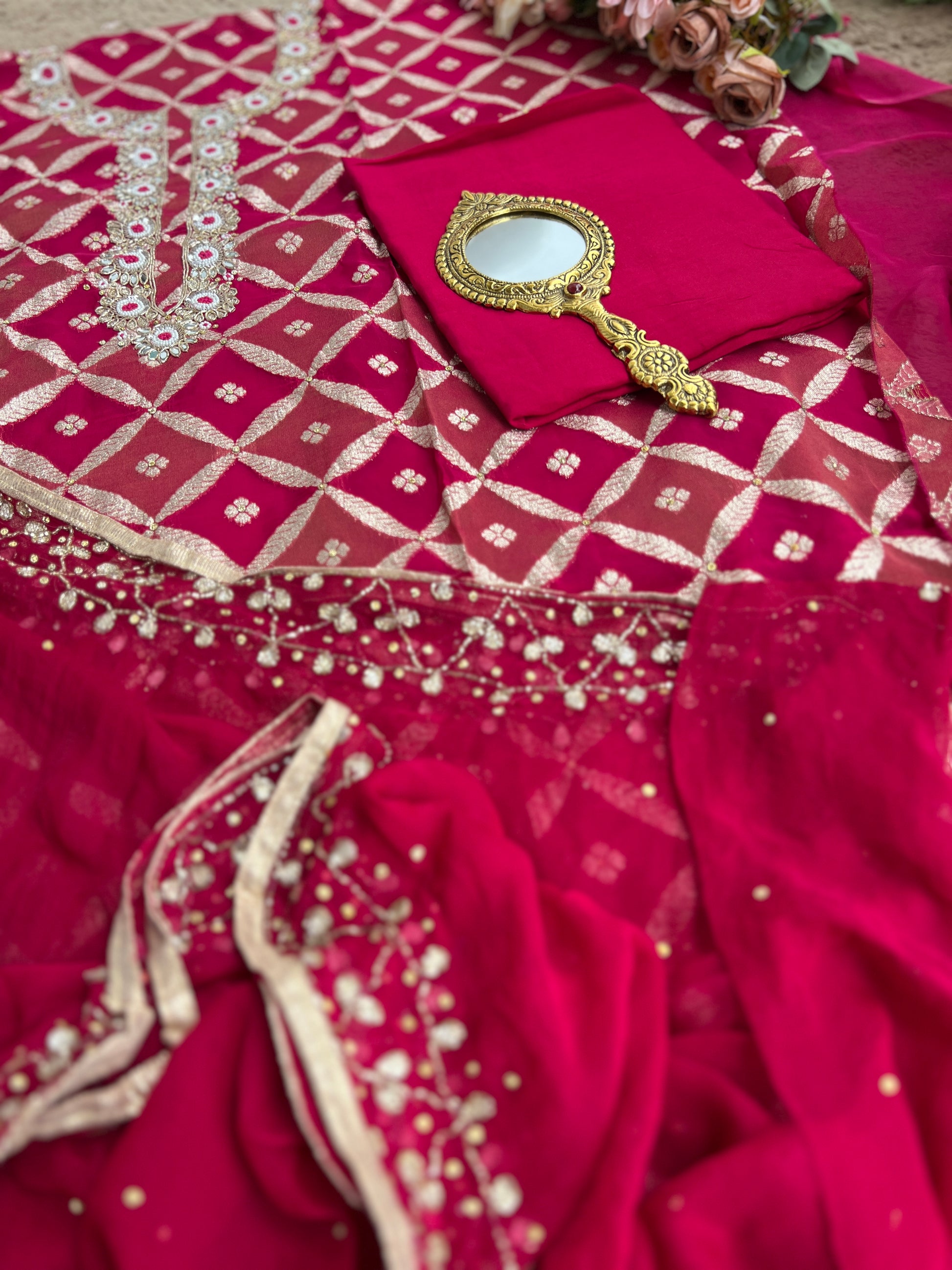 - Always dry clean to preserve the handwork and Banarasi weave.