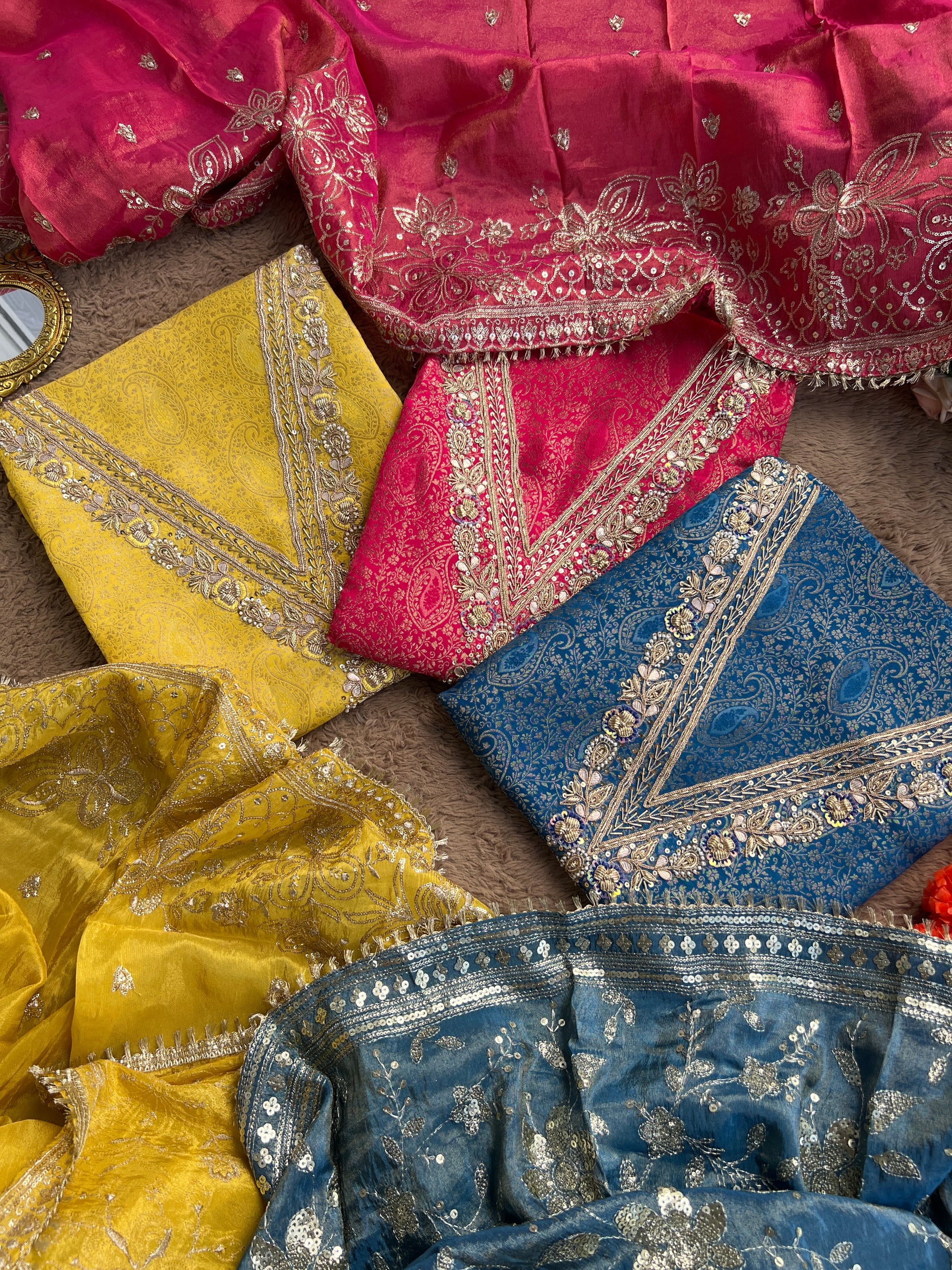 Brocade Banarasi Handwork Suit with Embroidered Dupatta – Timeless Elegance