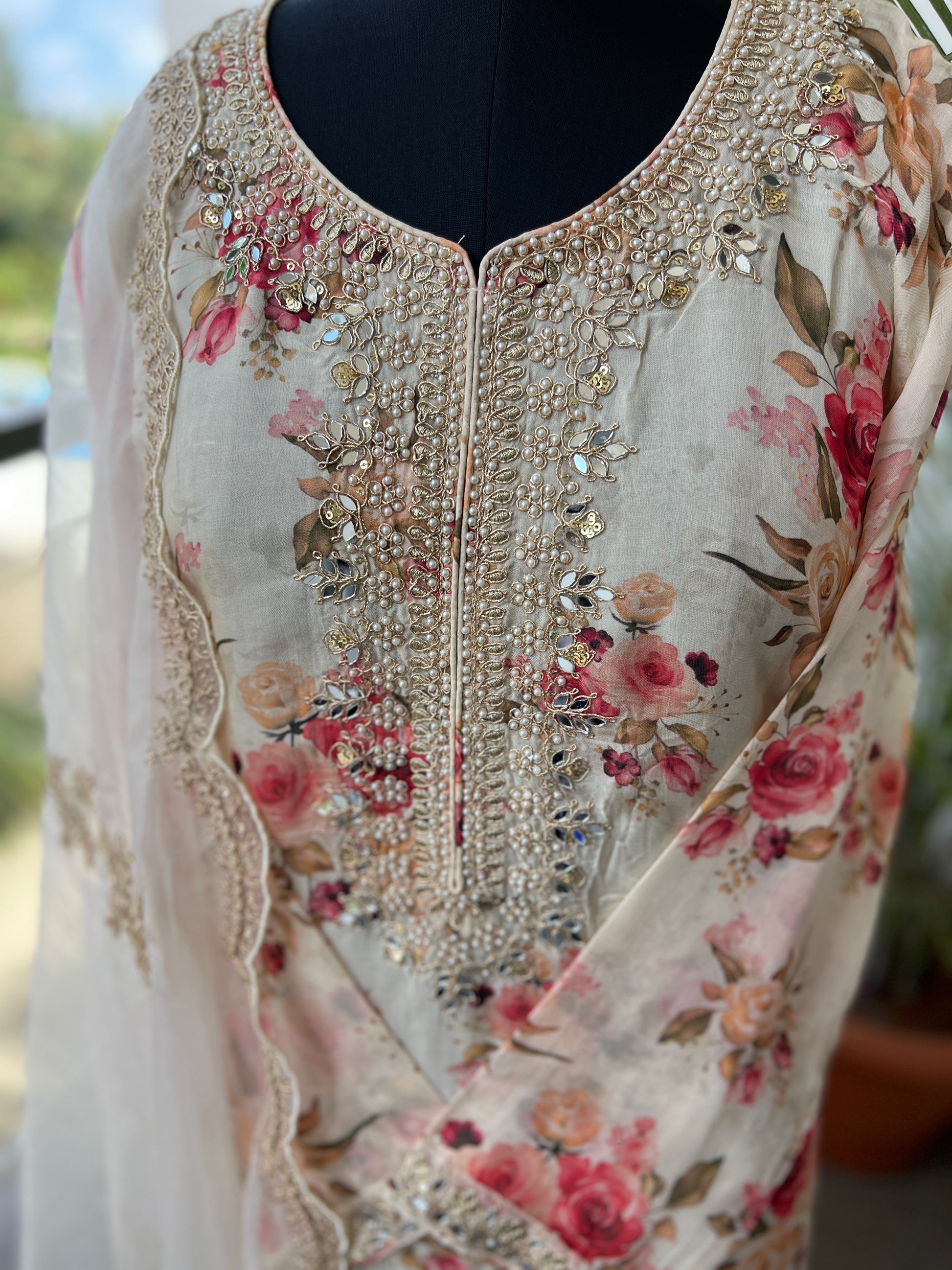 Elegance in Bloom – Ready to Wear Organza Handwork Salwar Suit with Net Embroidered Dupatta