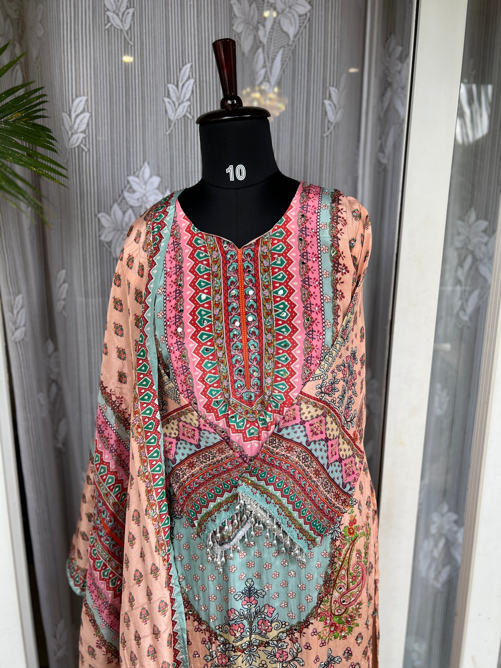 - Style: Stitched 3-piece Salwar Suit (Kurta, Bottom, Dupatta)