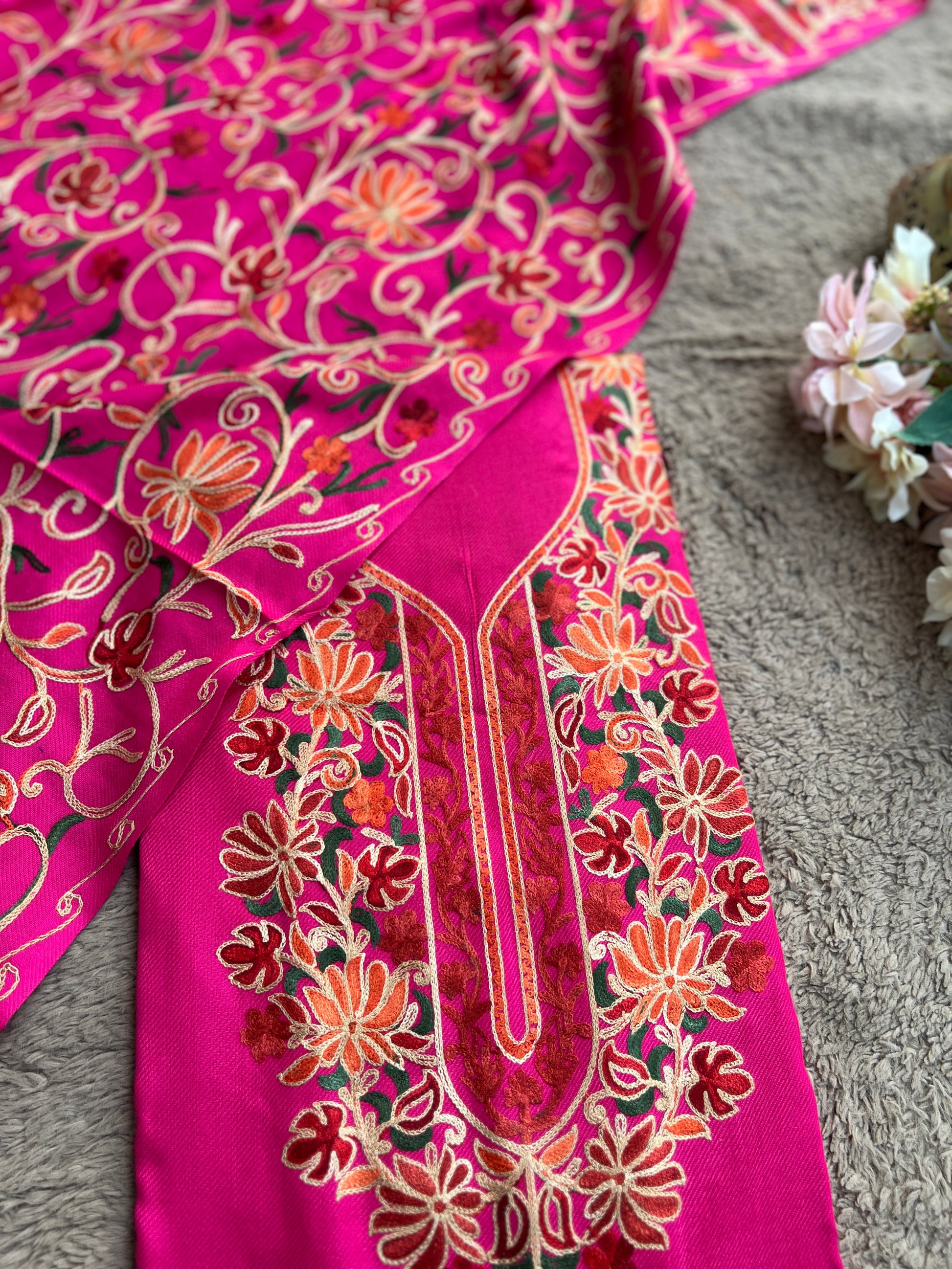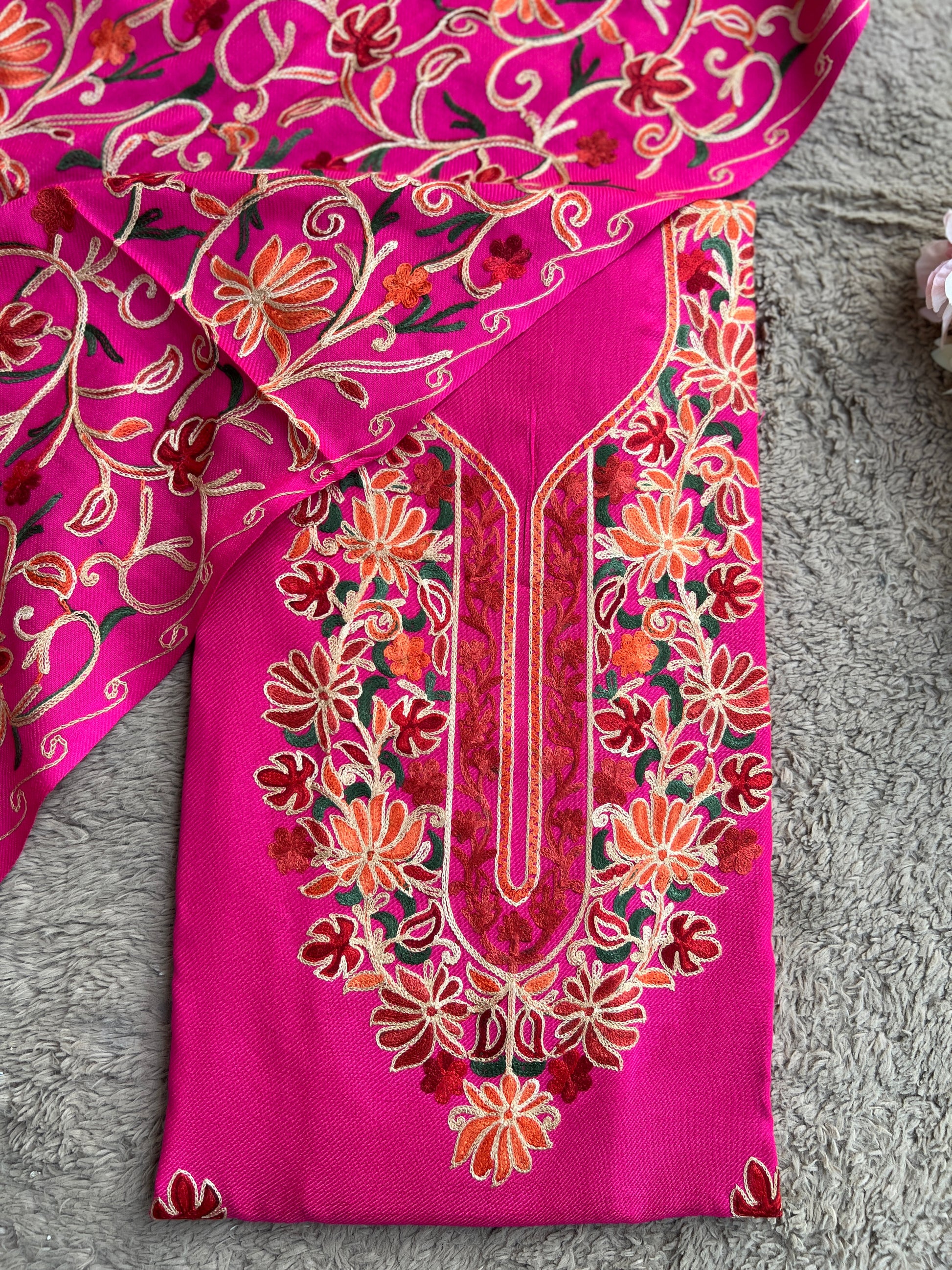 - Dupatta: Embroidered woolen dupatta with all-over Kashmiri threadwork