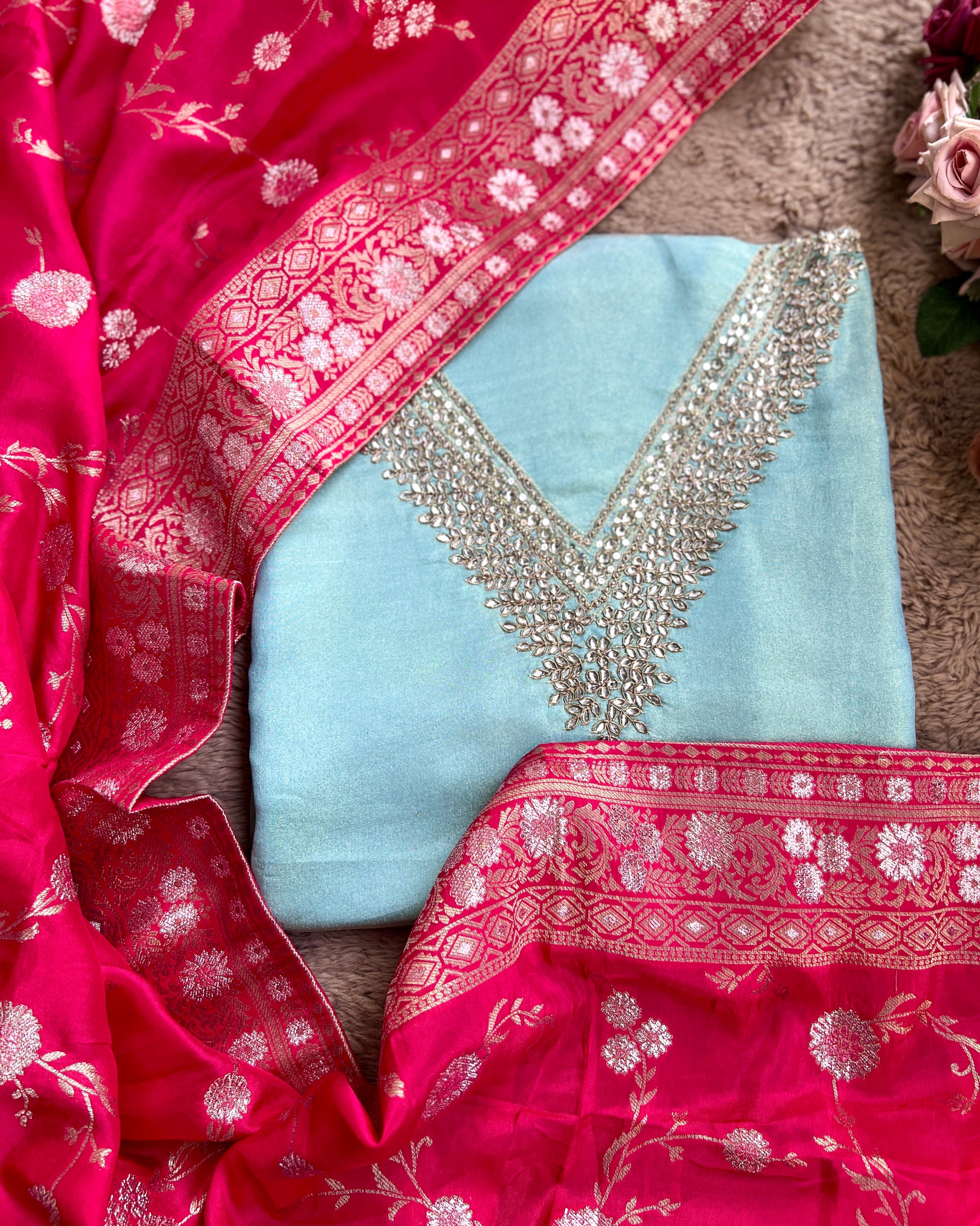 Elegant Shimmer Silk Suit with Dola Banarasi Dupatta ✨
