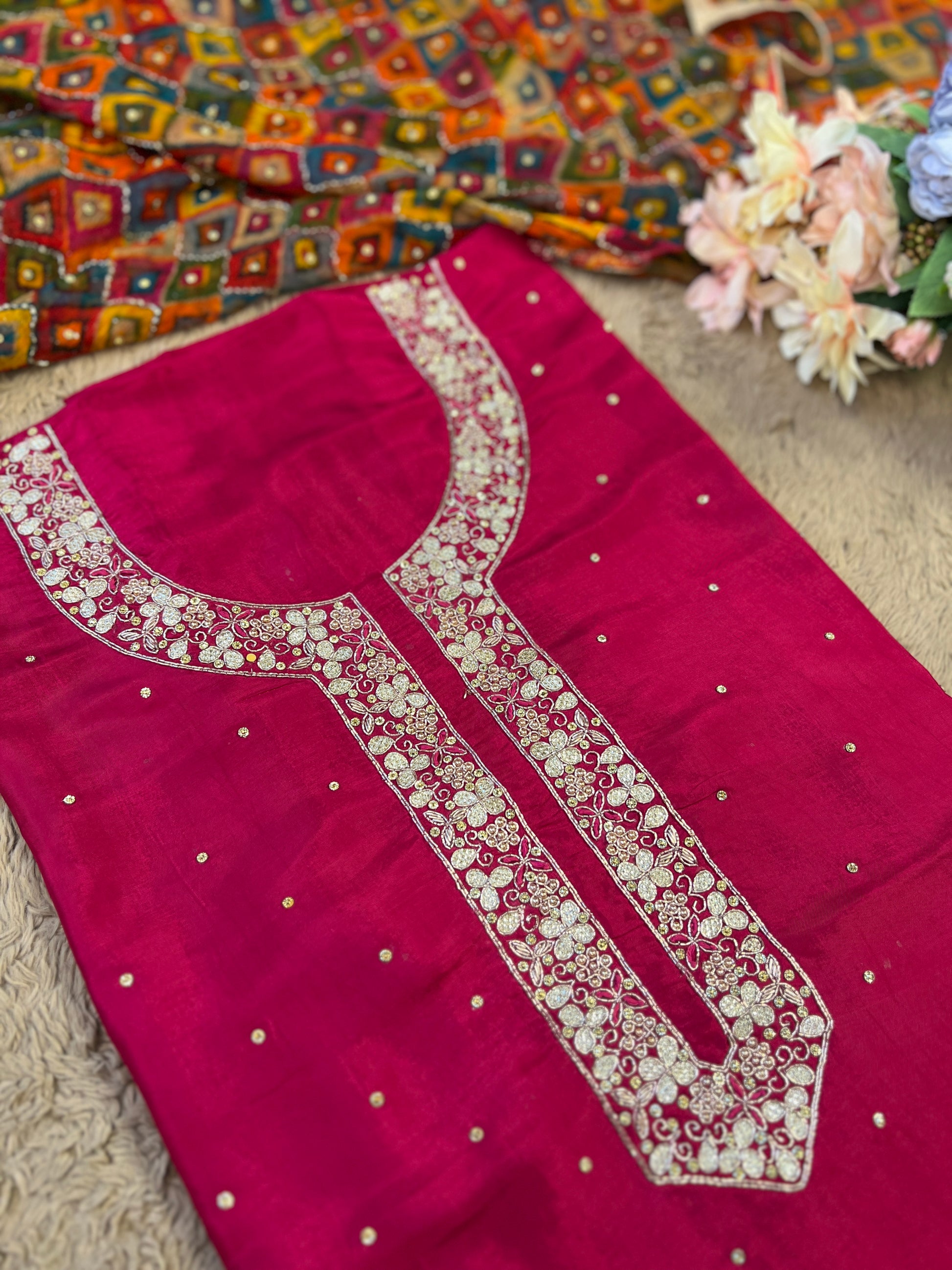 Fuchsia Silk Ensemble with Intricate Hand Embroidery & Chiffon Nanki Dupatta