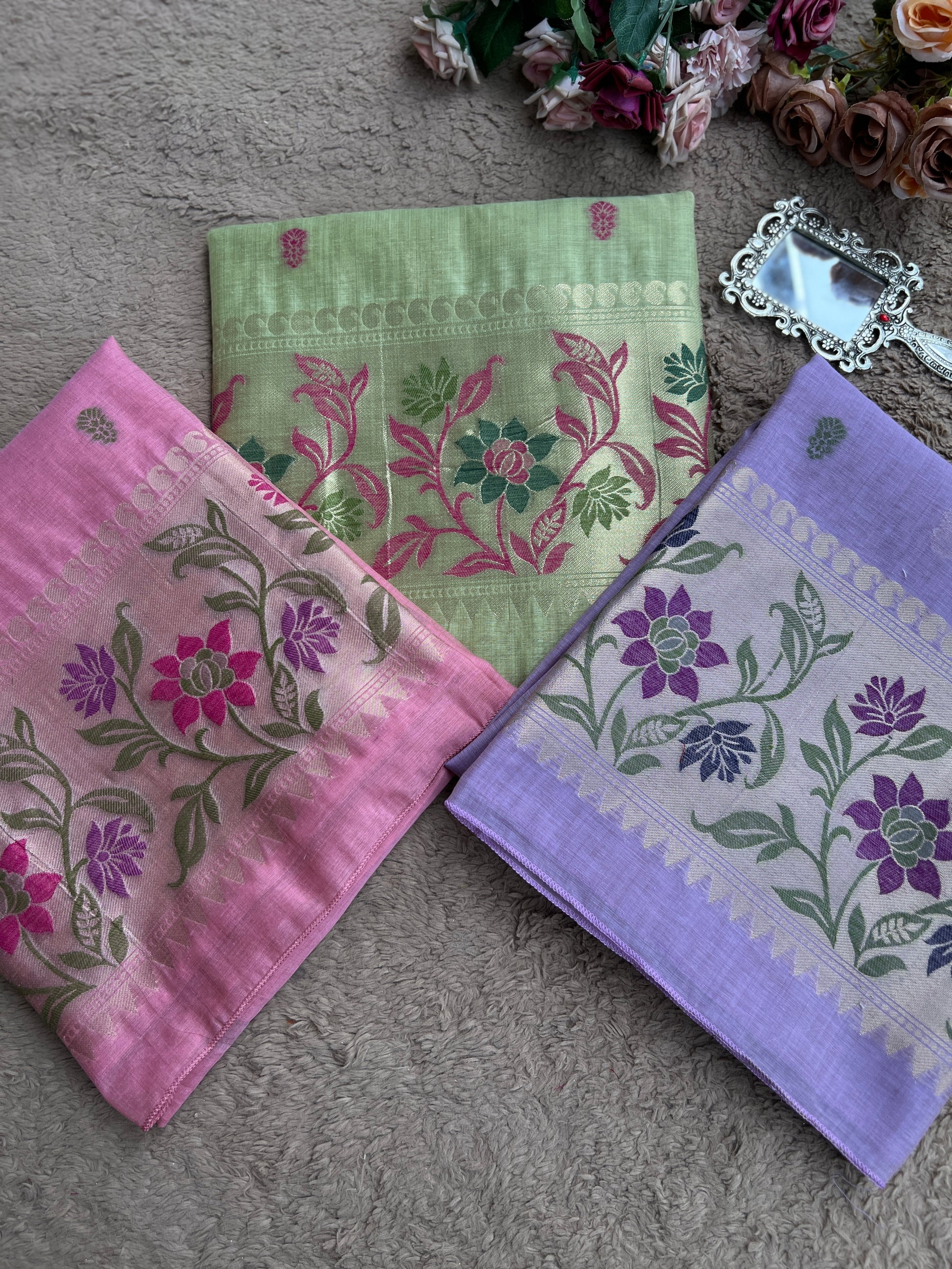 Completing the ensemble is a stunning Jamdaani dupatta, known for its lightweight feel, artistic weaving, and elegant drape.