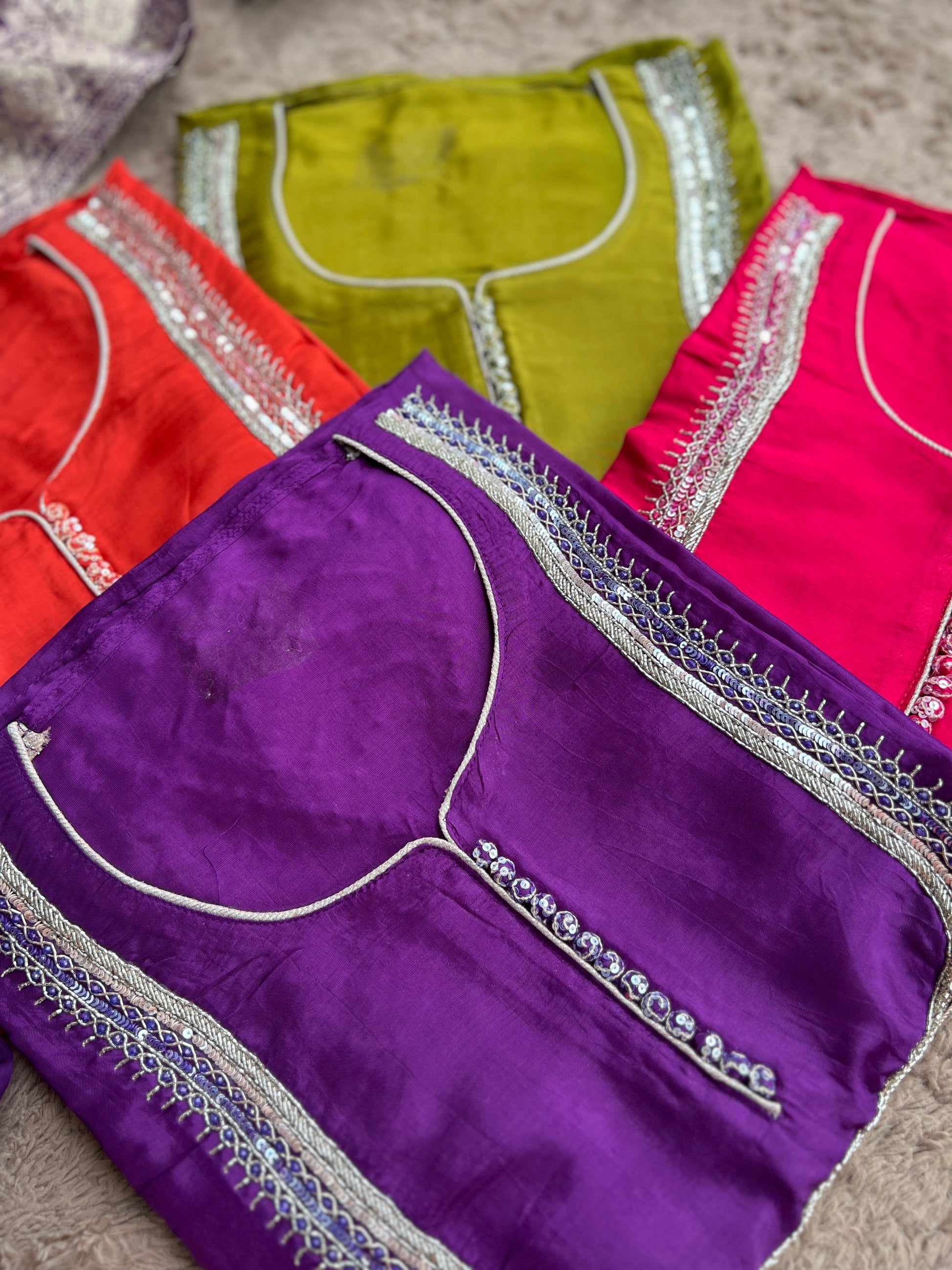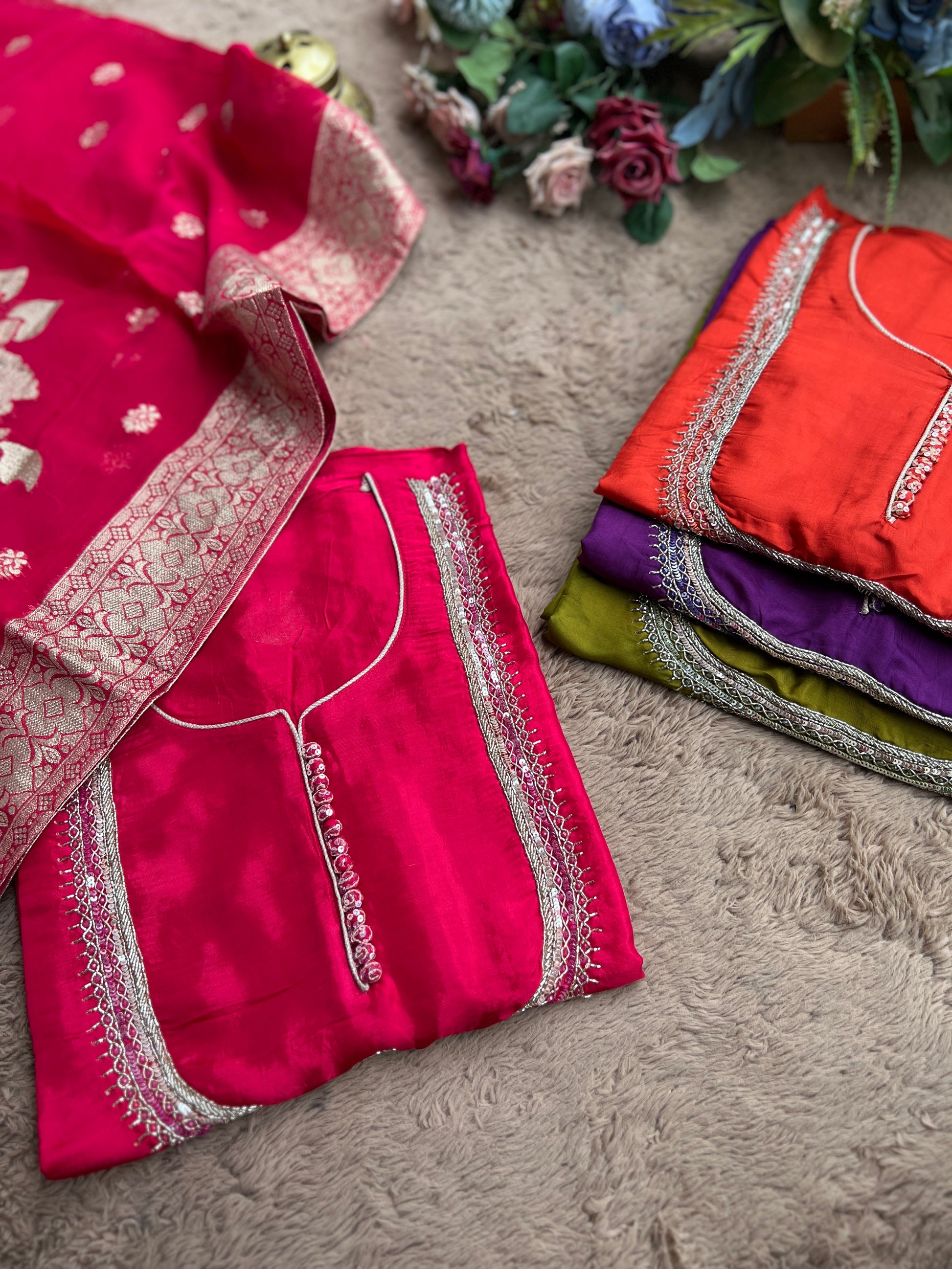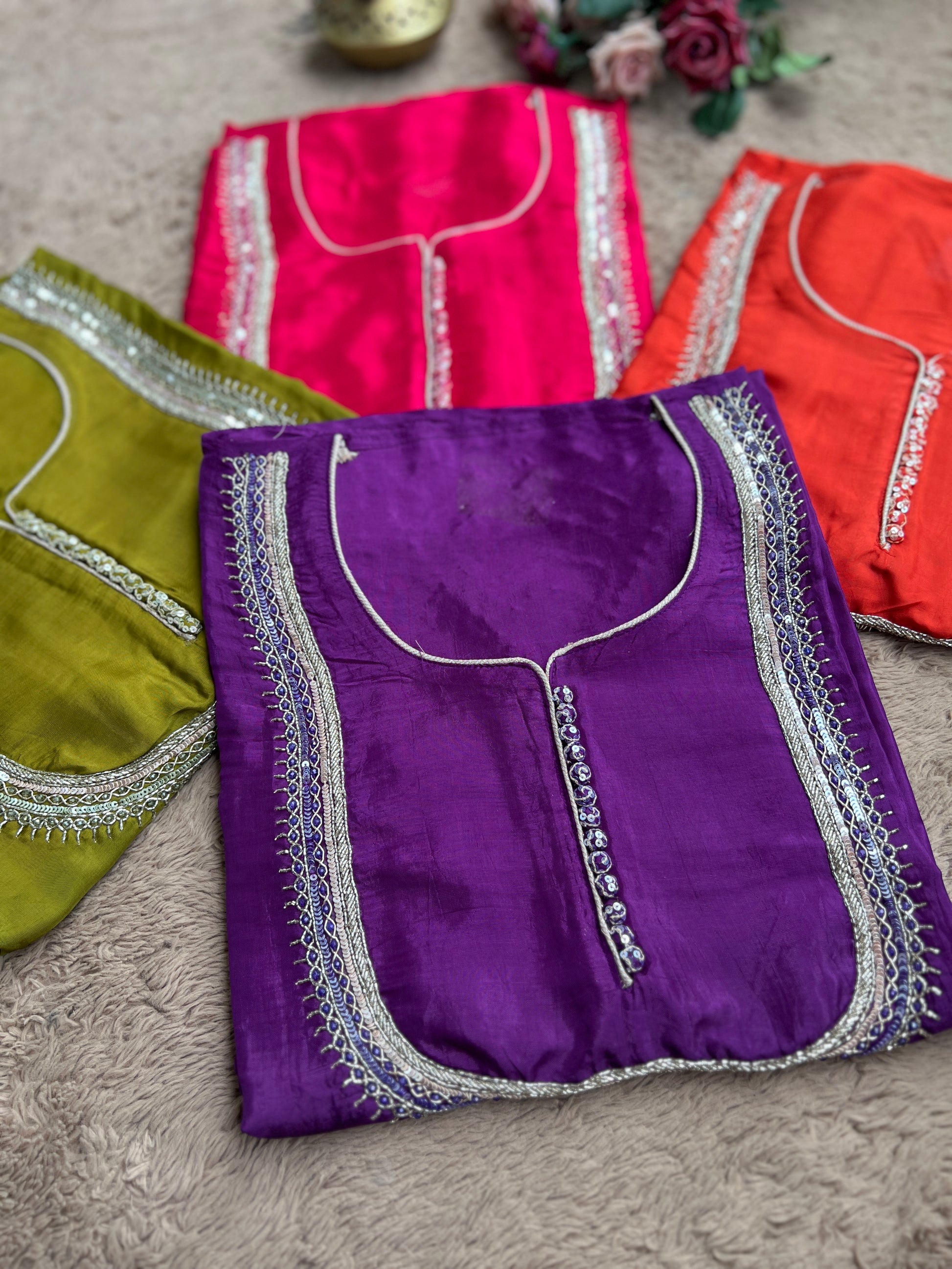 - Top: Shimmer Silk with hand embroidery