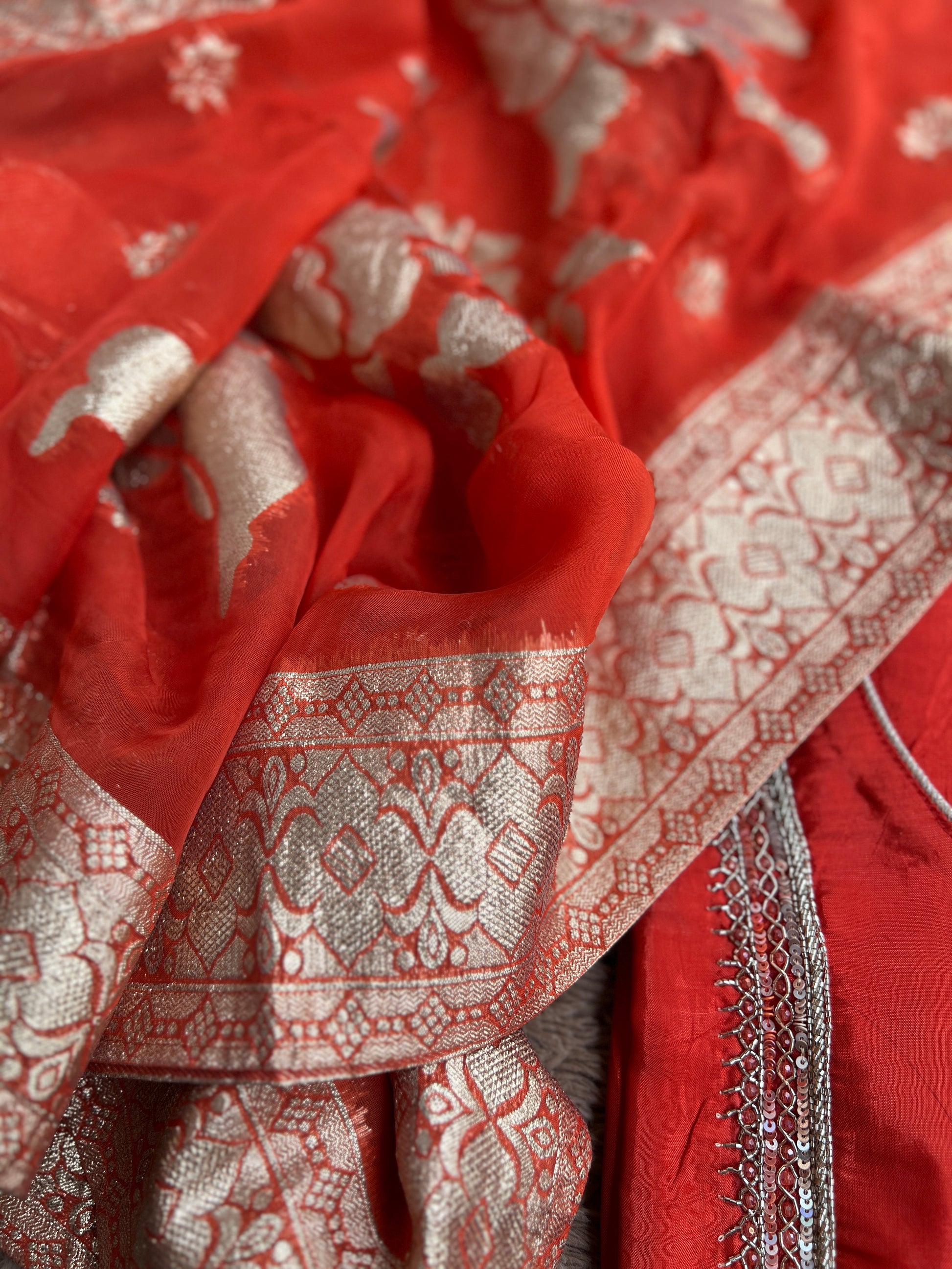 - Dupatta: Contrasting Dola Banarasi Silk with zari weave