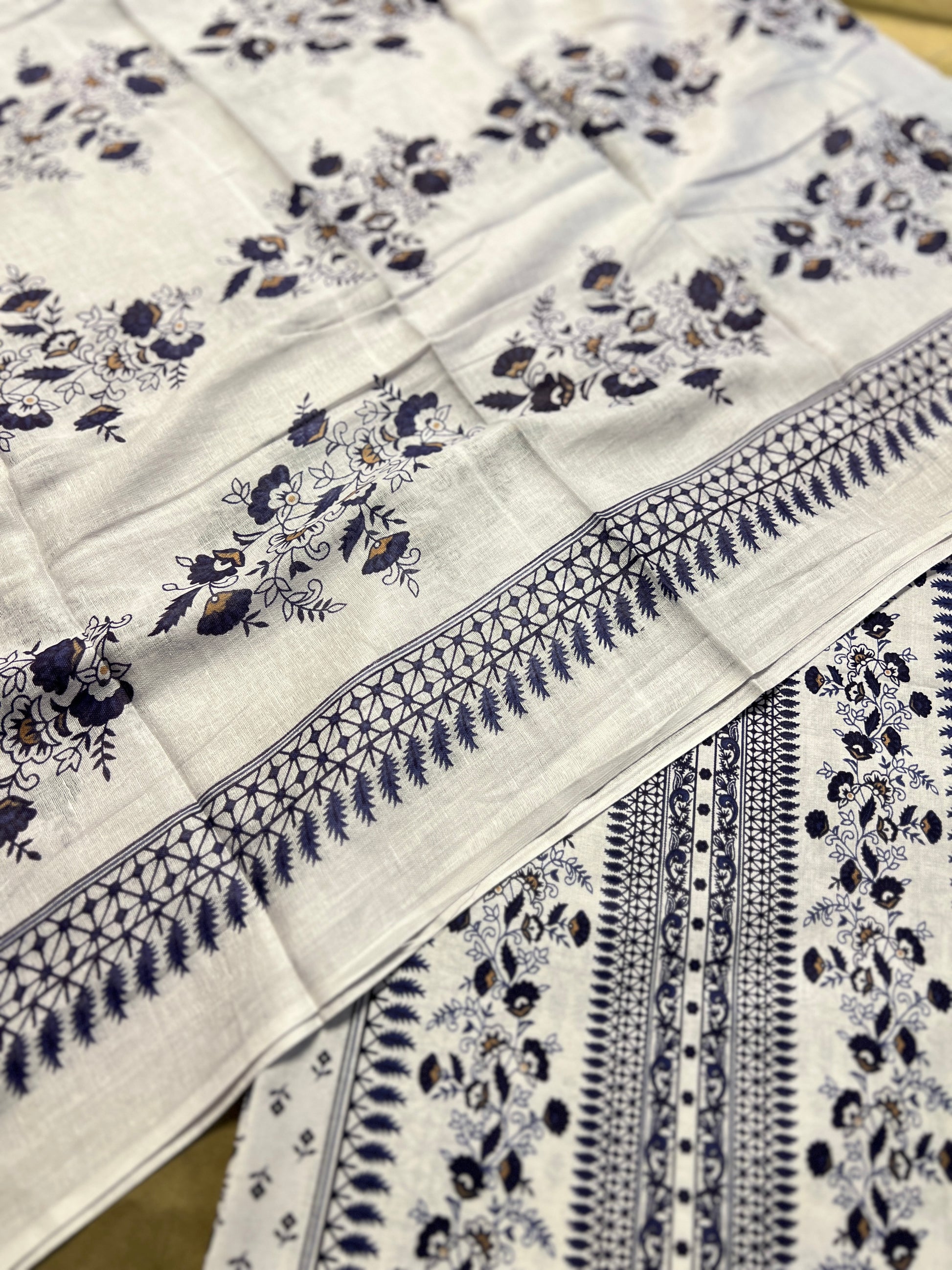 Ivory White & Indigo Blue Karachi Print Cotton Suit – Summer Dailywear Classic