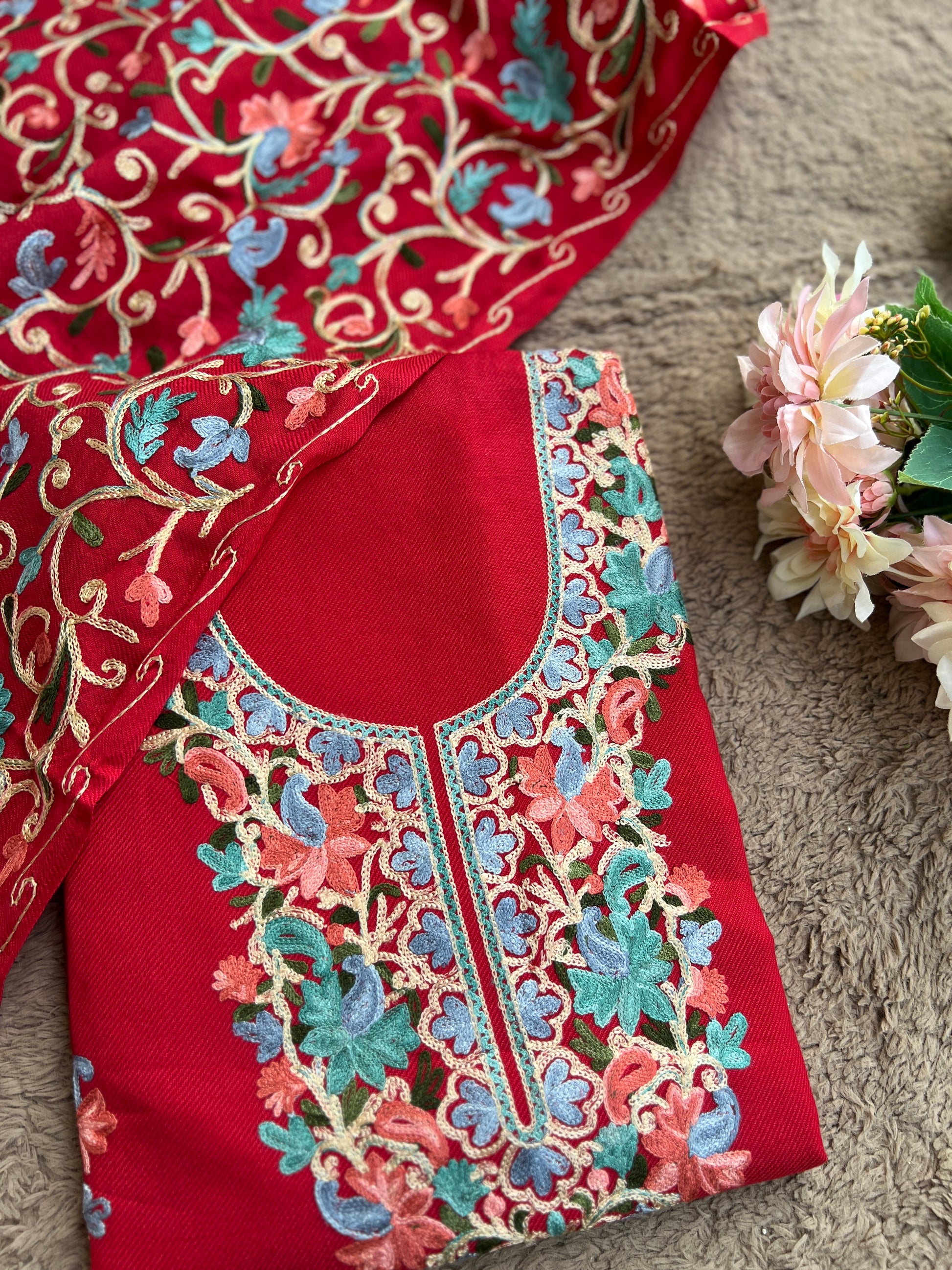 Kashmiri Charm Woolen Suit Set – Intricate Multi-Thread Embroidery