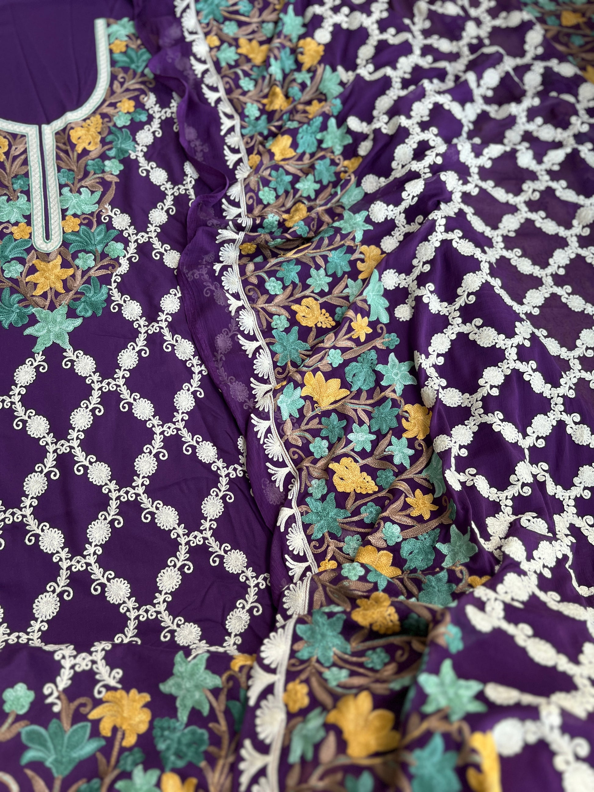 Kashmiri Multithread Embroidered Modal Cotton Suit with Chiffon Jaal Dupatta