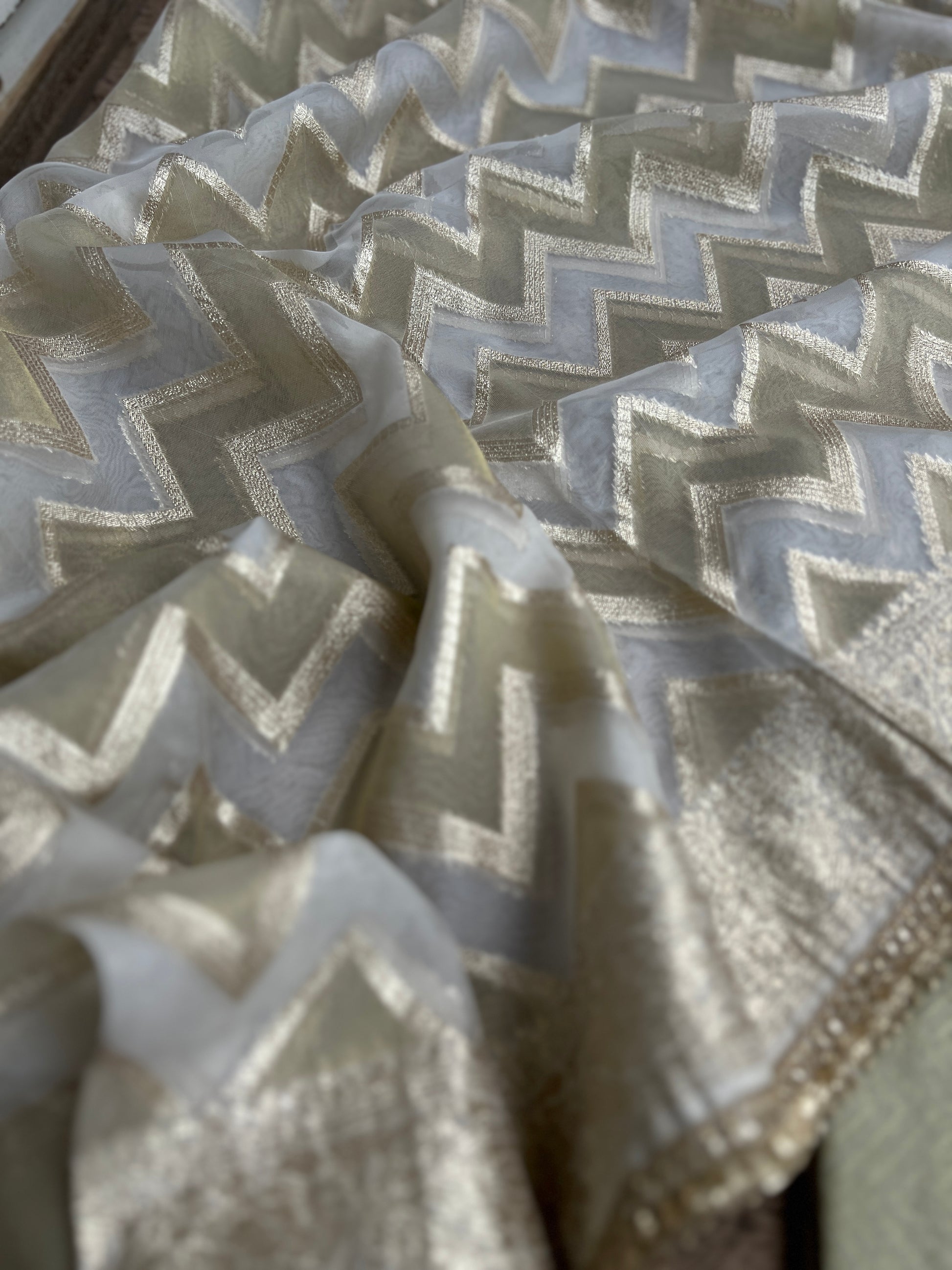 Olive Charm: Tissue Elegance with Banarasi Grace