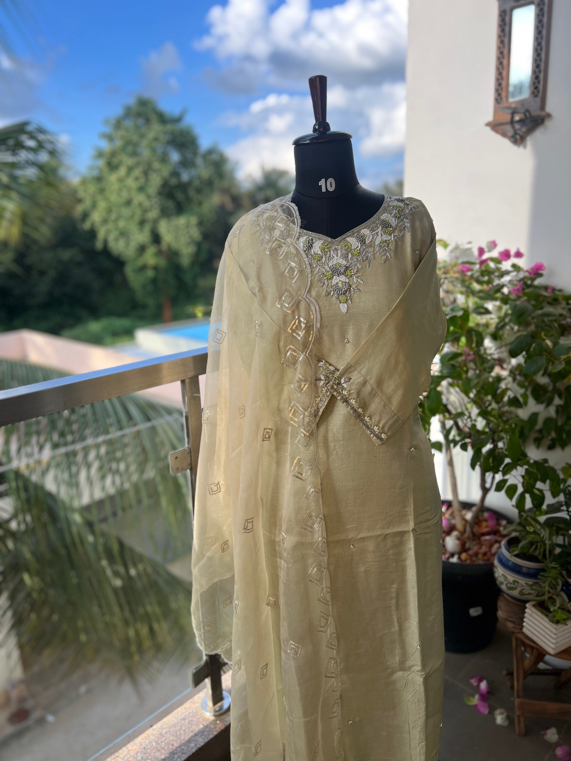 - Dupatta: Sheer organza with elegant sequins embroidery