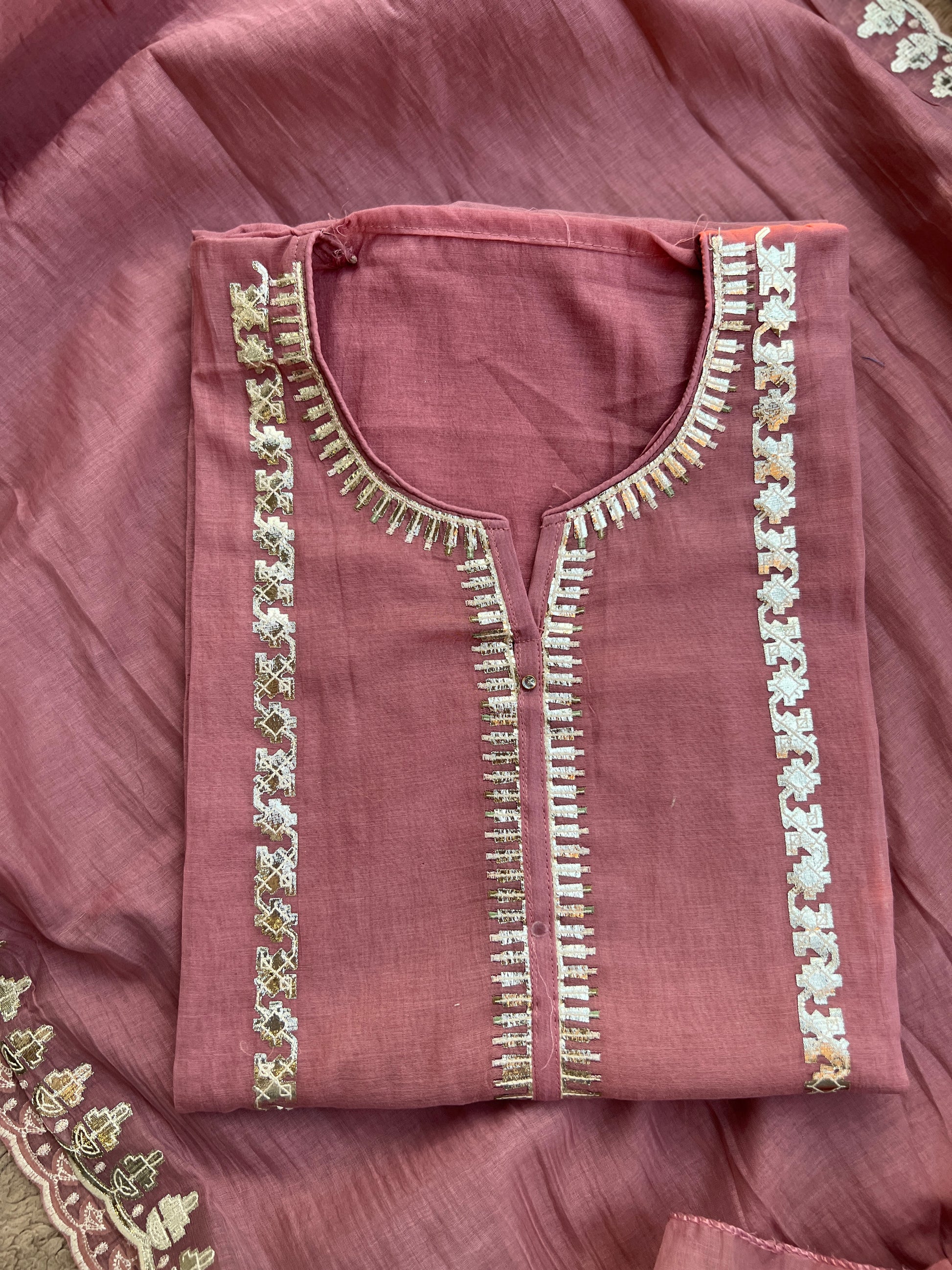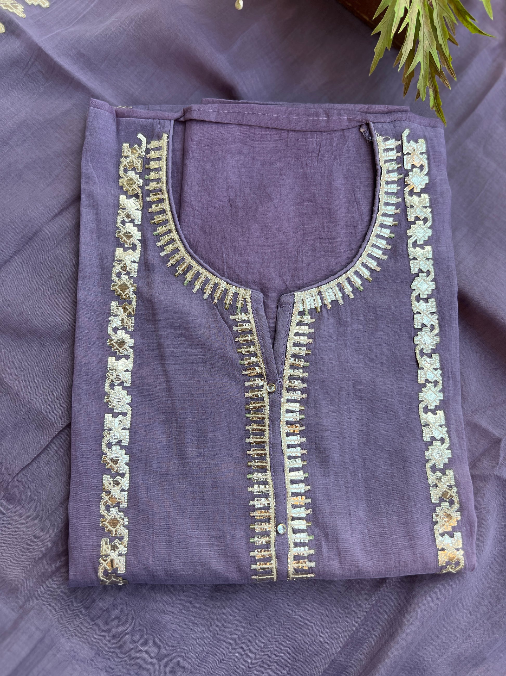 A graceful blend of elegance and craftsmanship, this Mal Chanderi suit set comes in soothing shades of Rose Pink, Lavender Purple & Mustard Yellow. Each piece features intricate pitta work detailing on the neckline and panel, adding a subtle festive shine. Paired with a lightweight Chanderi dupatta with delicate borders and a soft Shantoon bottom, this set is perfect for effortless everyday elegance and festive looks.