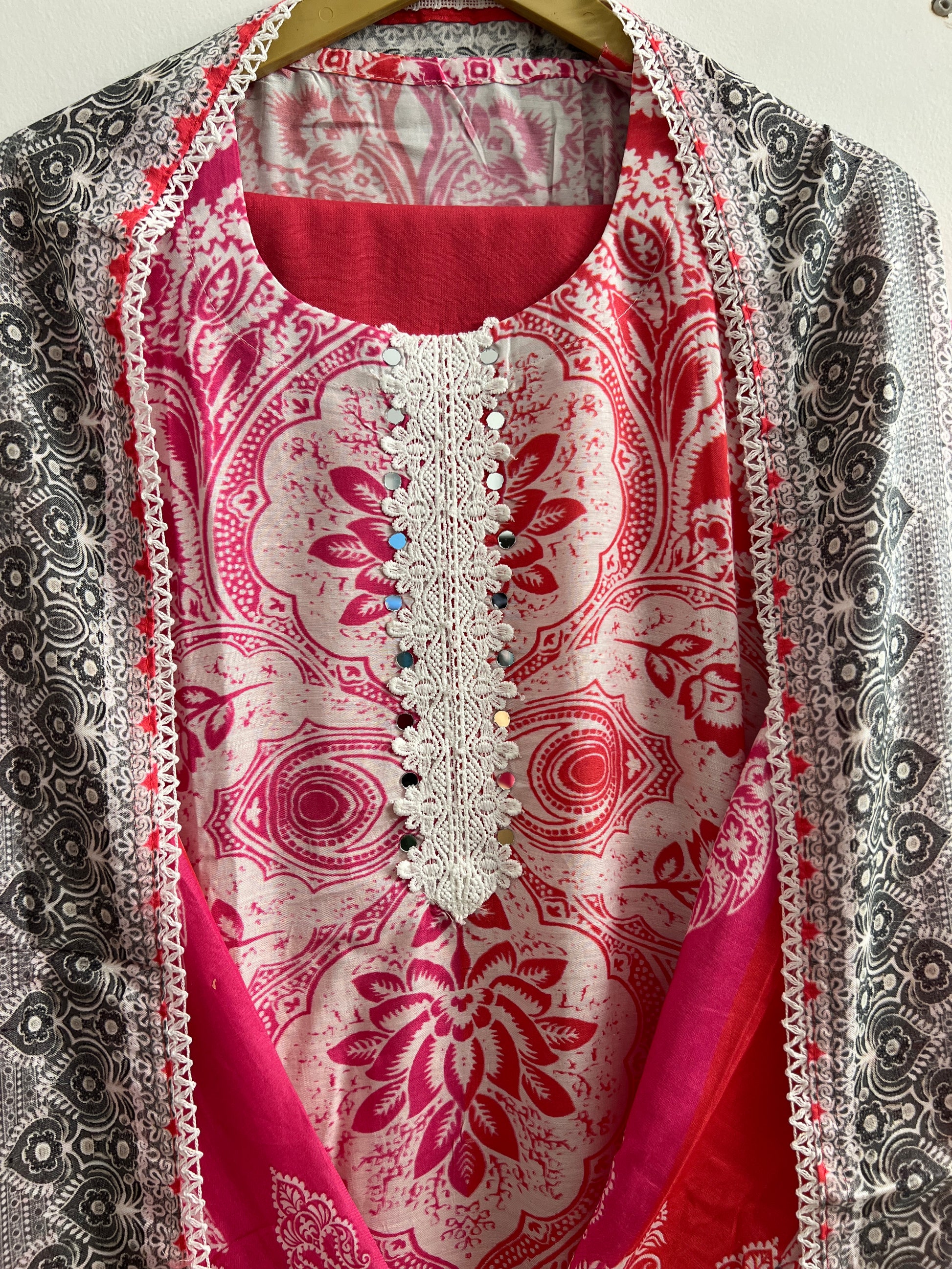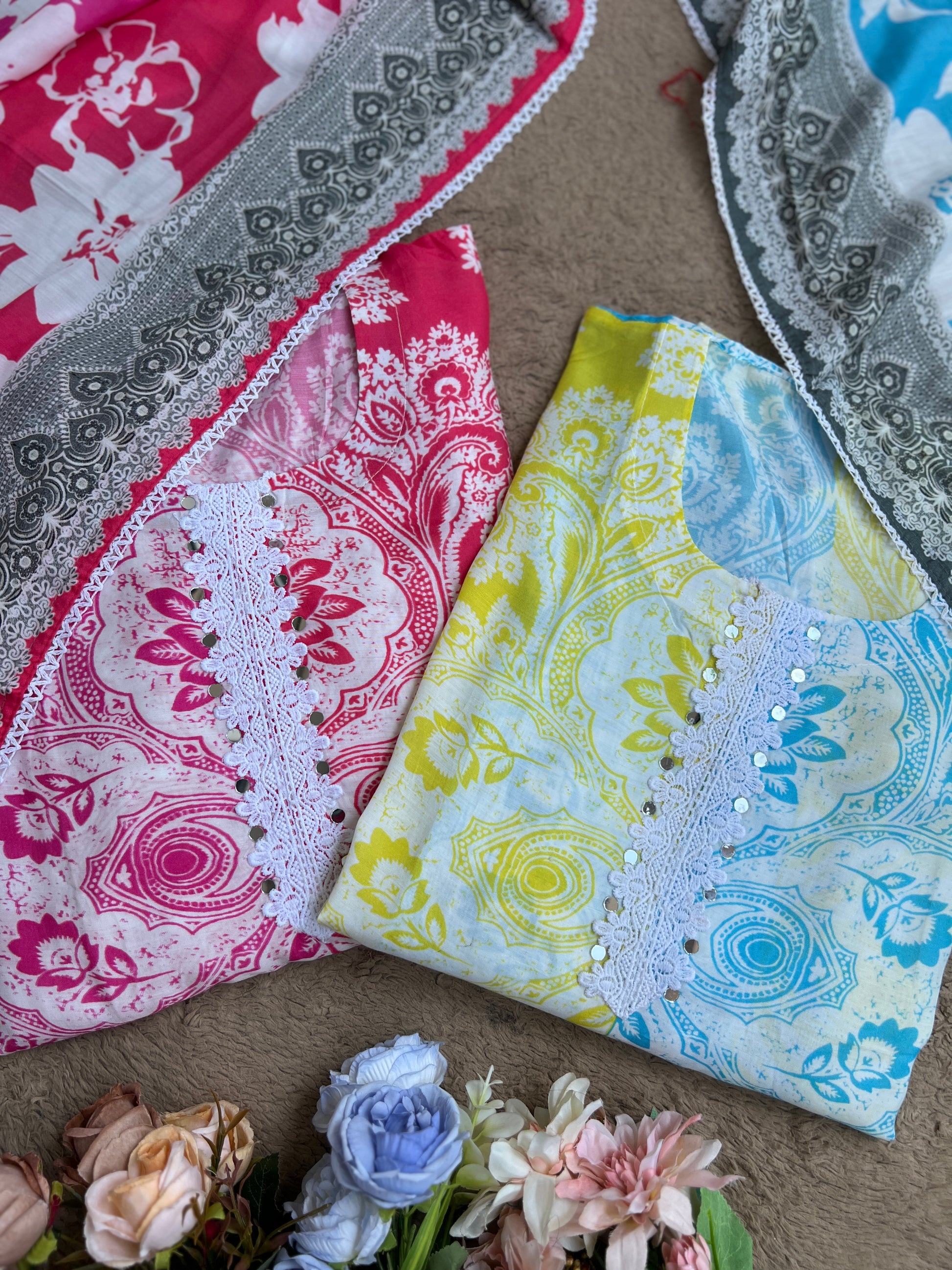 Every suit at The Syma Closet is a labour of love β€” stitched not just by hands, but by generations of craft knowledge. The Kalkatta handwork on this dupatta takes a single artisan over 3 days to complete, each motif placed with intention and care. We source our shimmer tissue silk from the finest weavers of Varanasi, where the Banarasi tradition has lived for centuries. When you wear this suit, you carry that history with you.