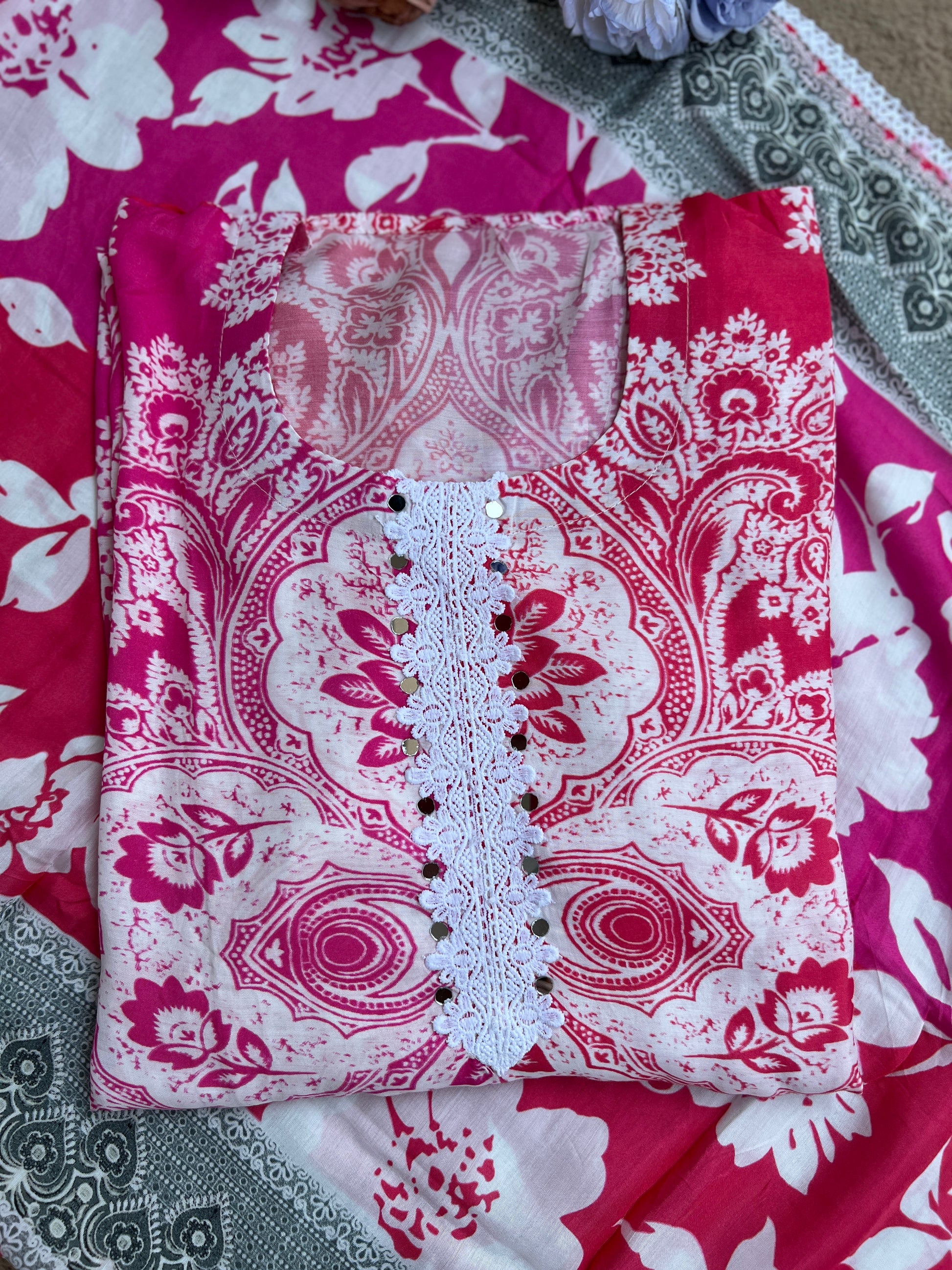 Crafted in pure mal mal maslin fabric, this elegant semi-stitched suit set is designed for ultimate comfort and effortless summer style.