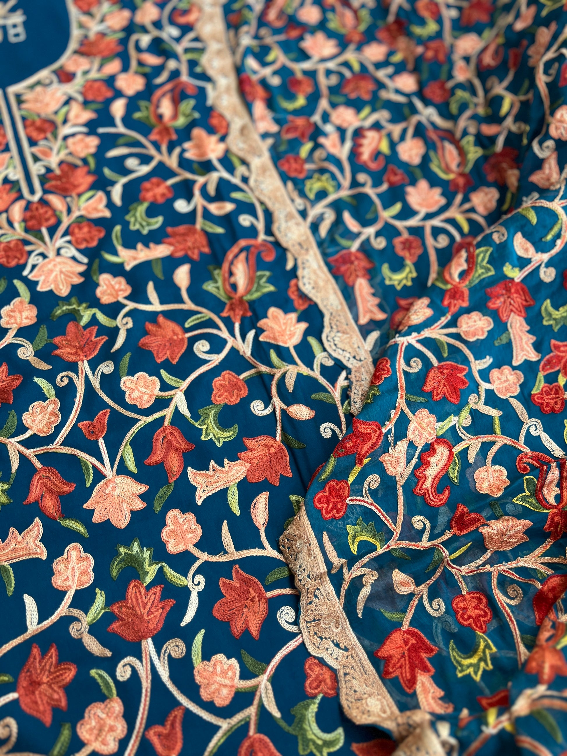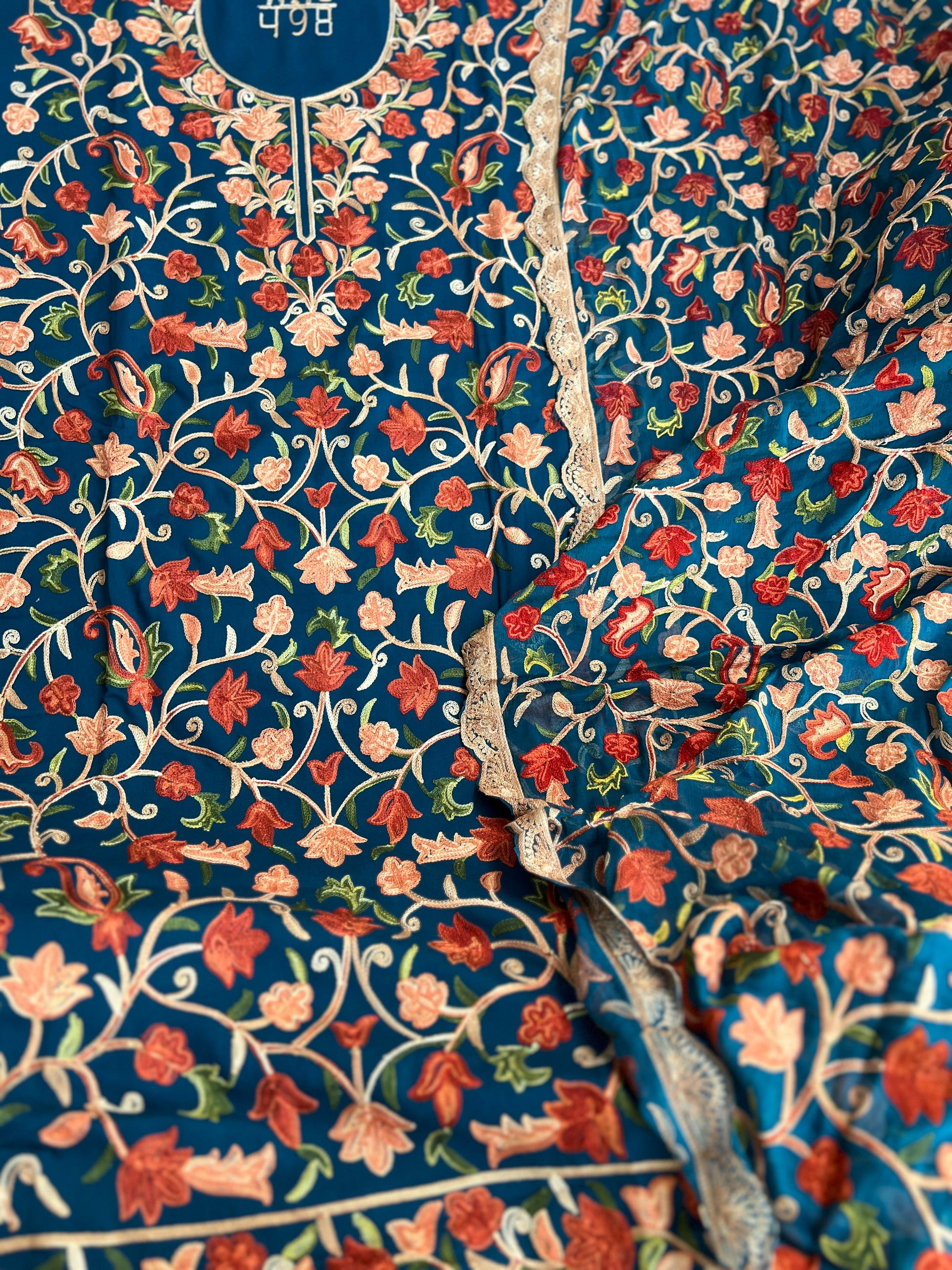 Teal Serenity Kashmiri Jaal Suit with Chiffon Embroidered Dupatta