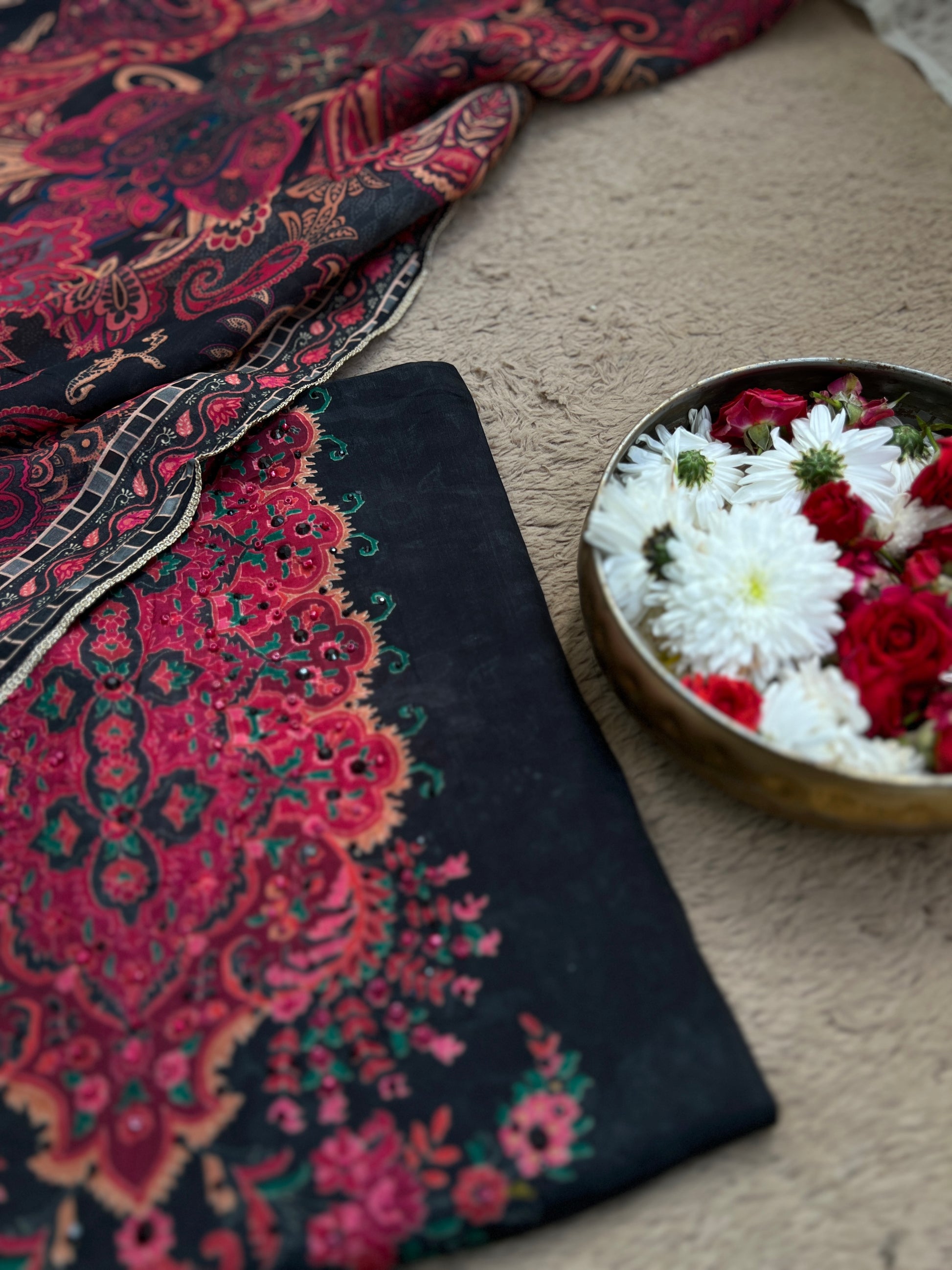 - Top: Semi-stitched Russian Silk (Sabyasachi-inspired heritage print)